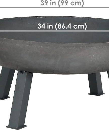 34-Inch Cast Iron Heavy-Duty Fire Pit for Outside – Wood-Burning Outdoor Fire Pit Bowl with Handles – Gray