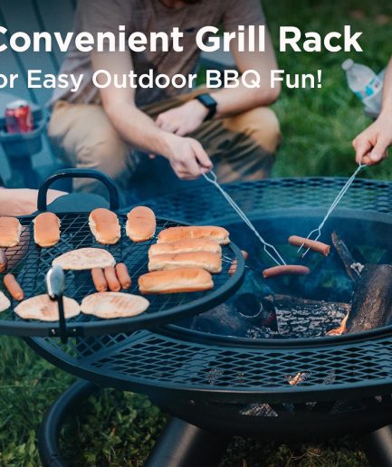 Red Mountain Valley 47″ Outdoor Fire Pit with Adjustable Grill, 2-in-1 Outdoor Large Wood Burning Firepit Bowl, Bonfire Patio Fire Pits with Cooking grates, Metal Round Table for Backyard