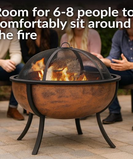32-Inch Copper Fire Pit for Outside – Wood-Burning Fire Pit Bowl with Spark Screen, Wood Grate, and Poker