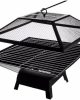 19in Outdoor Fire Pits Outside Wood Burning Firepit Square Metal Fireplace Table Fire Bowl with Grill,Screen and Poker for Camping Bonfire Backyard BBQ