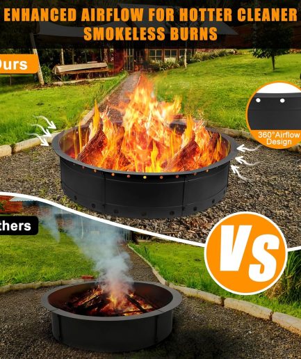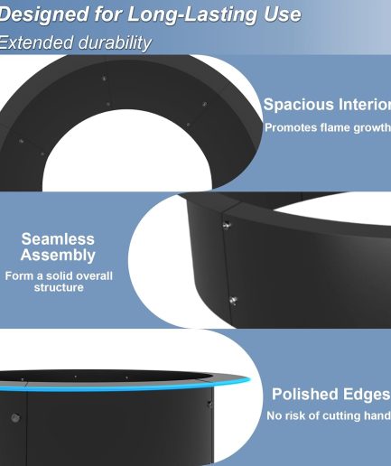 - Powerful & Controllable 50,000 Heat with 304 Burner The heart of the system. The round fire table features a high-output, commercial-grade 304 stainless steel burner that delivers robust, instant warmth. An easy-turn knob gives you precise control over the flame height, from a soft ambient glow to full 50,000 power for cooler nights.